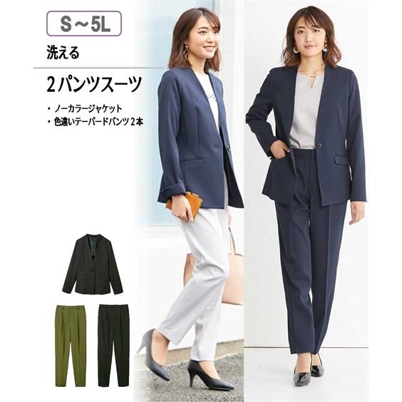 魅力的な スーツ レディース パンツスーツ 2パンツ S 5l 洗える ノーカラー 色違い テーパード 春夏秋 3点セット ニッセン S0 最安値挑戦 Lewisfamilyinsurance Com